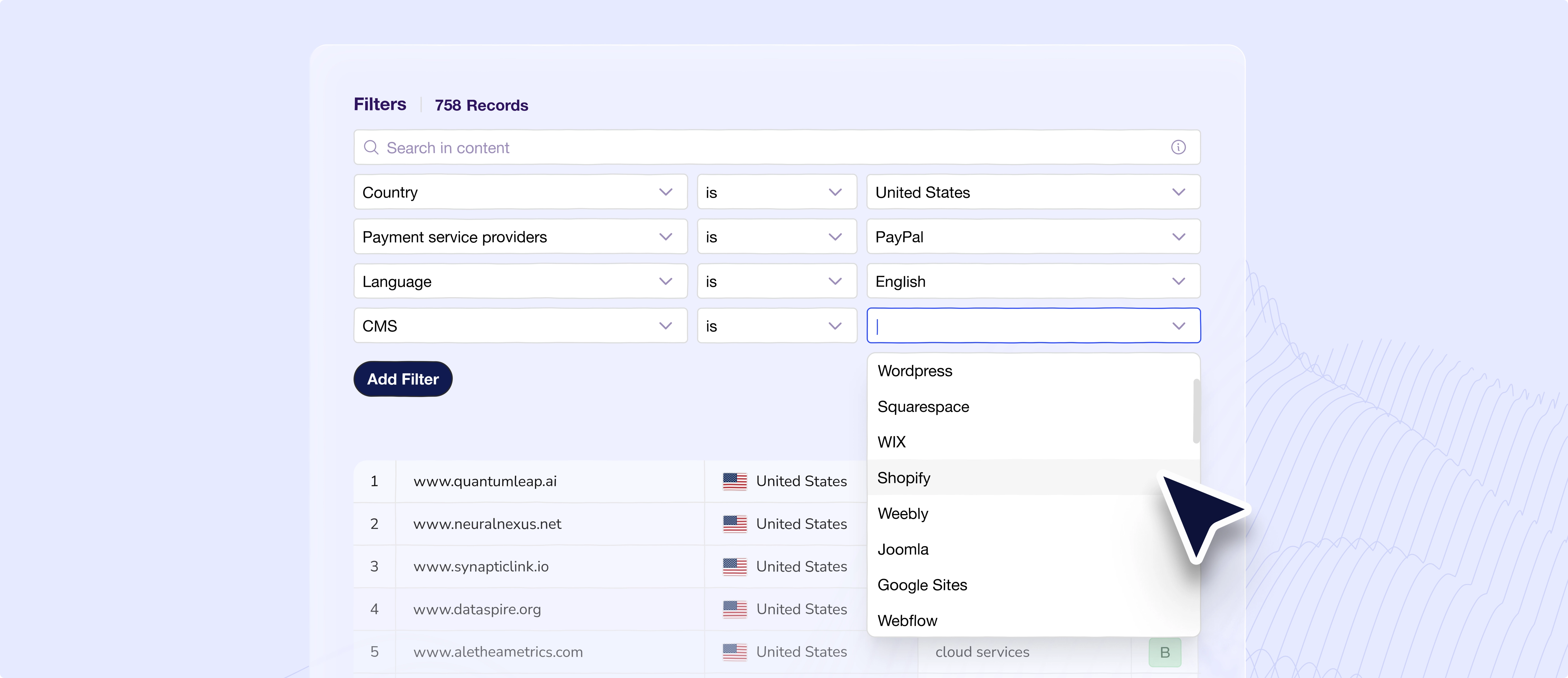 - Create a lead list with websites